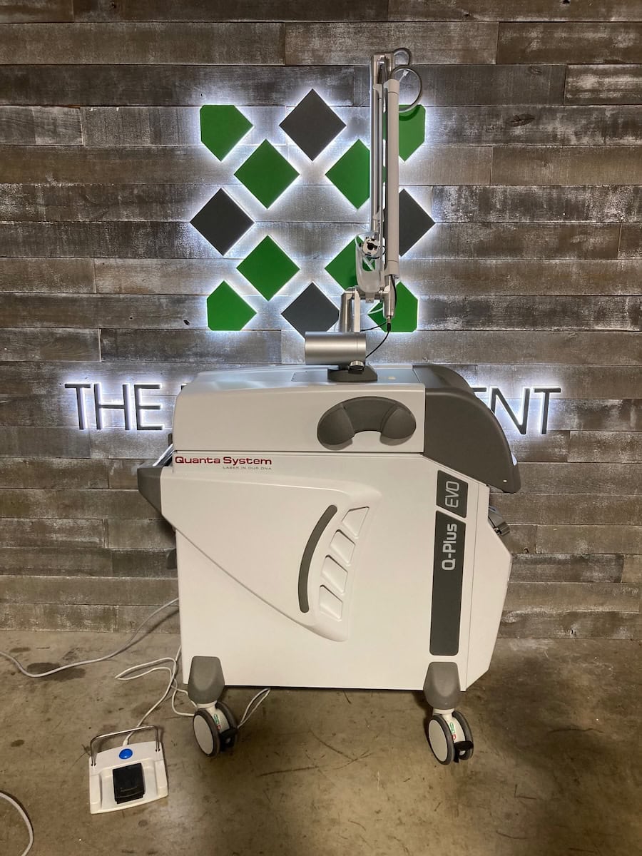 The Quanta Evo Q-Plus C laser is one of the most effective and reliable Q-Switch lasers available. Primarily used for tattoo removal, this laser has three wavelengths 1064nm, 532nm, and 694nm that can target all different colors of ink. This laser can also be used to treat vascular and pigmented lesions, permanent hair removal, and wrinkles.